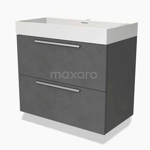 Modulo Waschtische | 80 cm Dunkelgrauer Beton Flach front Solid Surface 2 hohe Schubladen übereinanderliegend