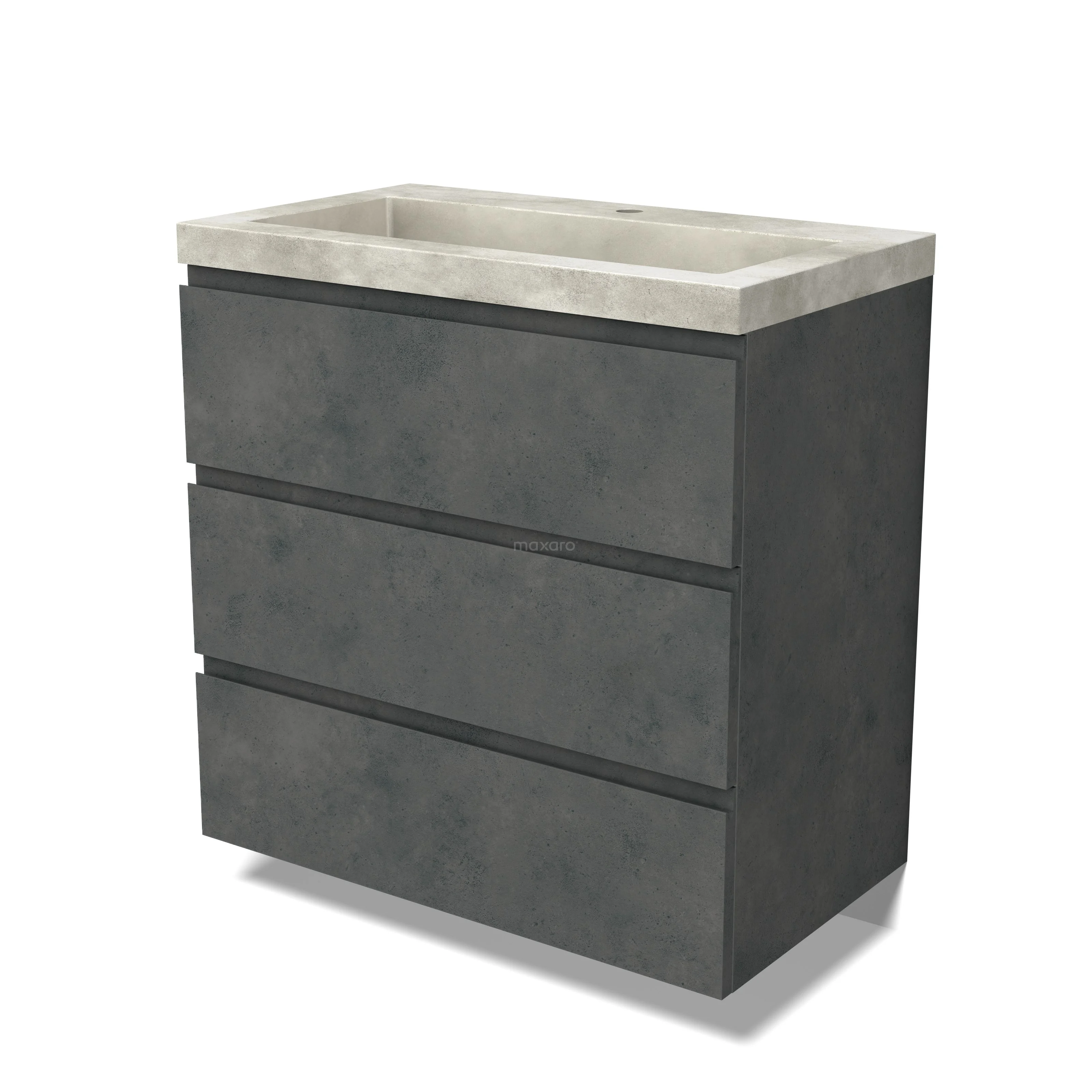 Modulo Waschtische | 80 cm Dunkelgrauer Beton Grifflos front Beton 3 Schubladen