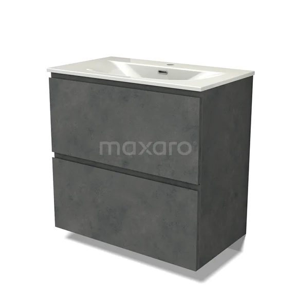 Modulo Waschtische | 80 cm Dunkelgrauer Beton Grifflos front Keramik 2 hohe Schubladen übereinanderliegend