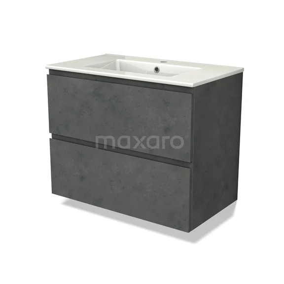 Modulo Waschtische | 80 cm Dunkelgrauer Beton Grifflos front Keramik 2 übereinanderliegende Schubladen