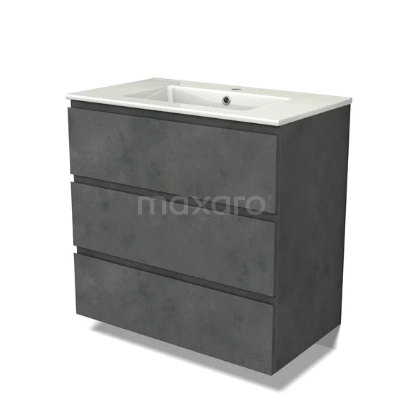 Modulo Waschtische | 80 cm Dunkelgrauer Beton Grifflos front Keramik 3 Schubladen