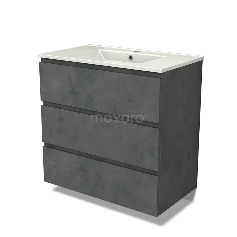 Modulo Waschtische | 80 cm Dunkelgrauer Beton Grifflos front Keramik 3 Schubladen
