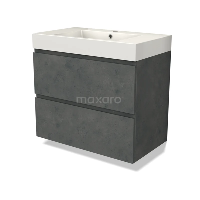 Modulo Waschtische | 80 cm Dunkelgrauer Beton Grifflos front Mineralguss 2 übereinanderliegende Schubladen