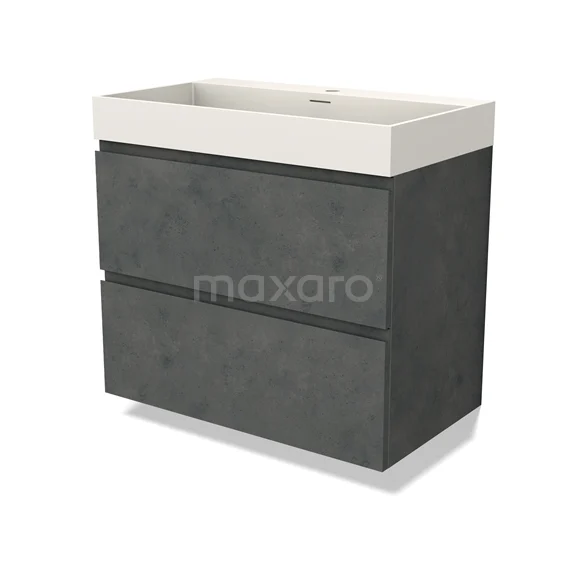 Modulo Waschtische | 80 cm Dunkelgrauer Beton Grifflos front Solid Surface 2 übereinanderliegende Schubladen