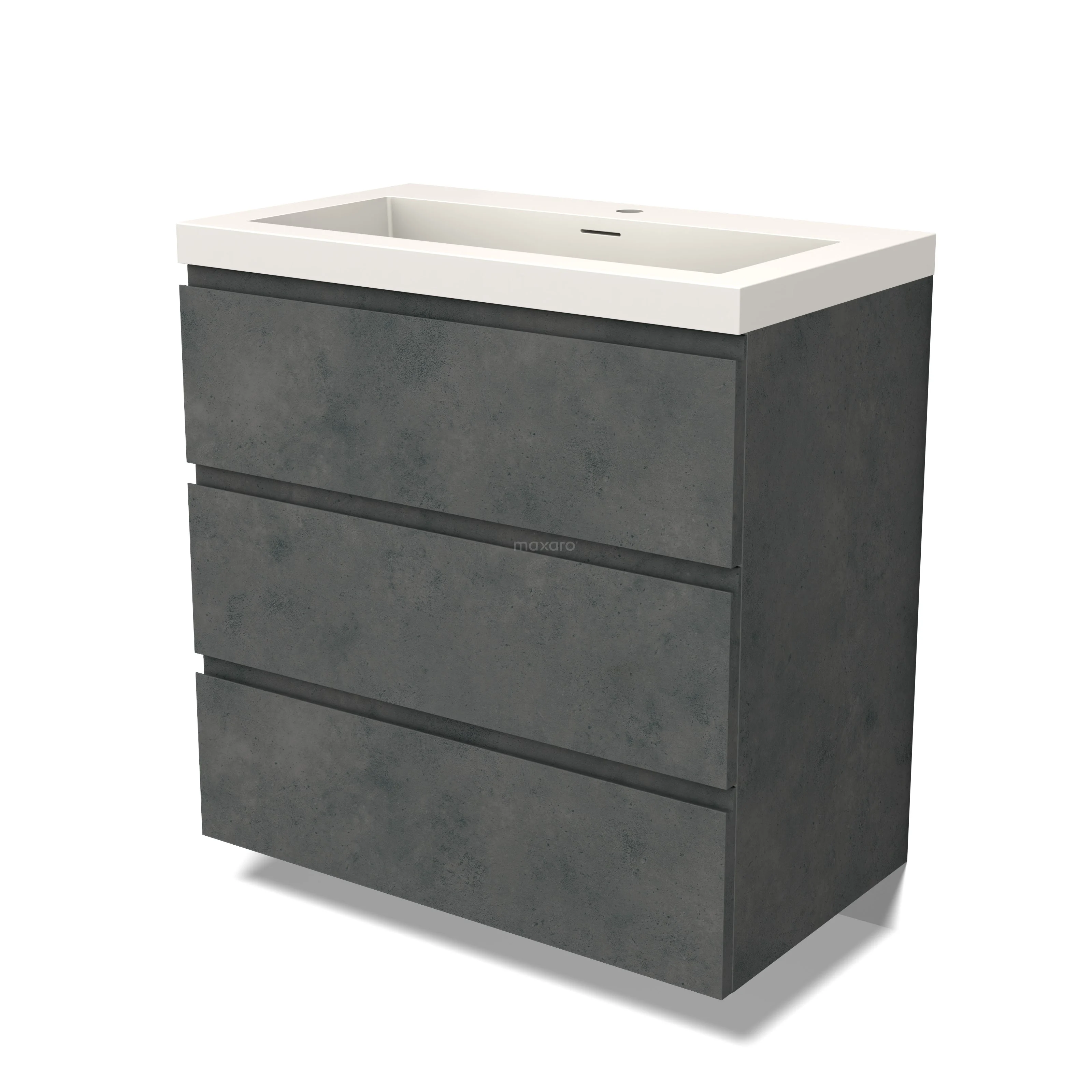 Modulo Waschtische | 80 cm Dunkelgrauer Beton Grifflos front Solid Surface 3 Schubladen