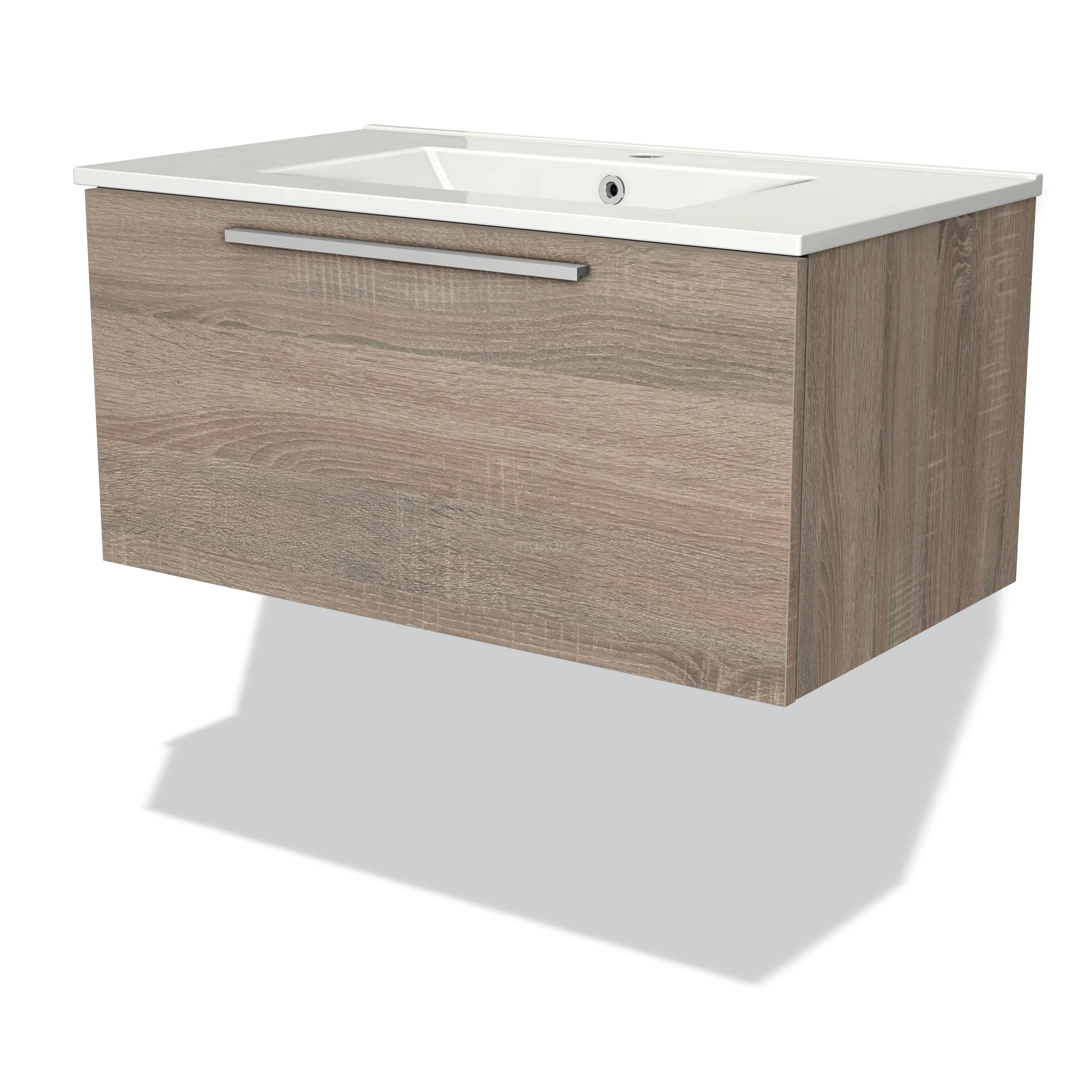Modulo Waschtische | 80 cm Eiche Flach front Keramik 1 Schublade