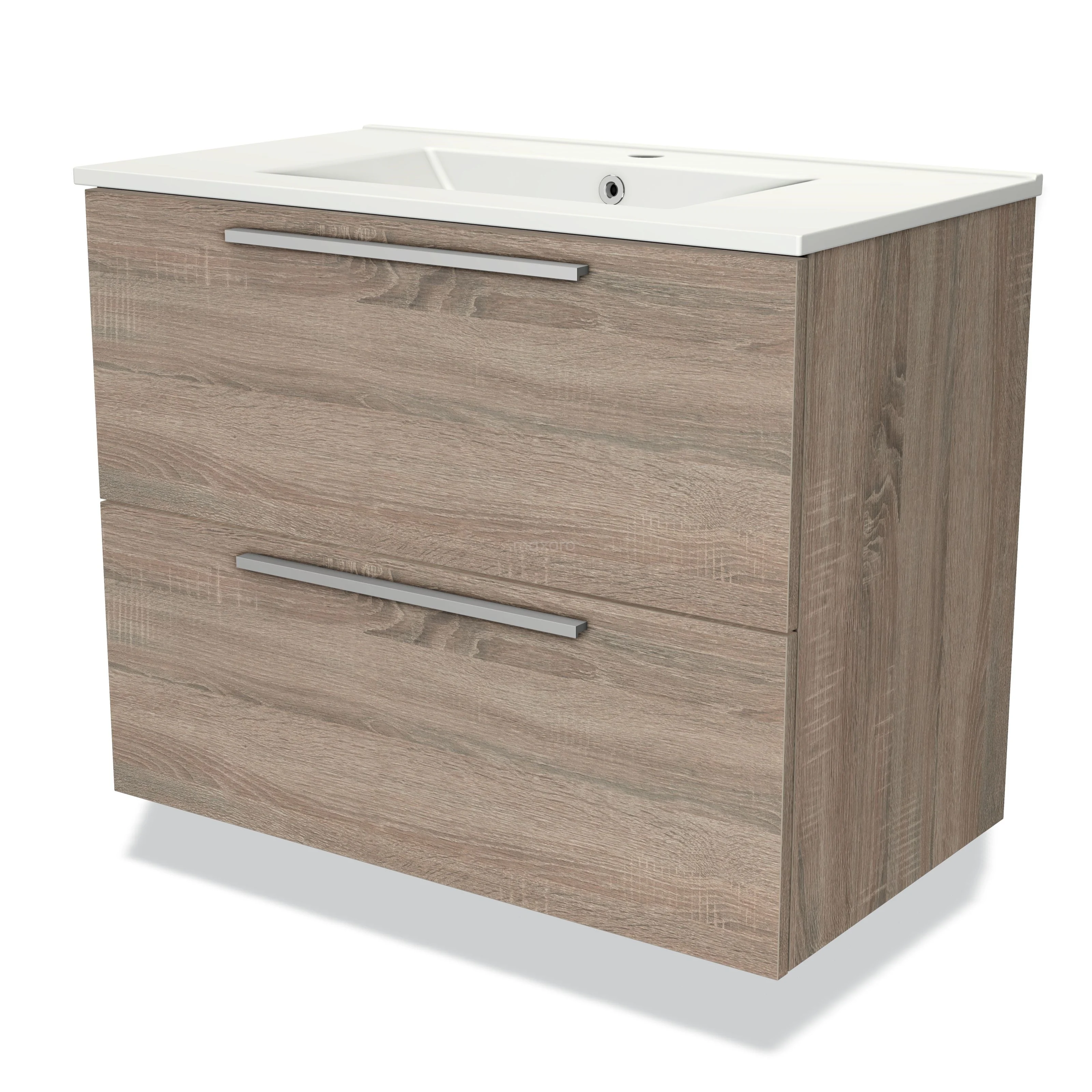 Modulo Waschtische | 80 cm Eiche Flach front Keramik 2 übereinanderliegende Schubladen