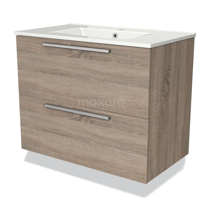 Modulo Waschtische | 80 cm Eiche Flach front Keramik 2 übereinanderliegende Schubladen