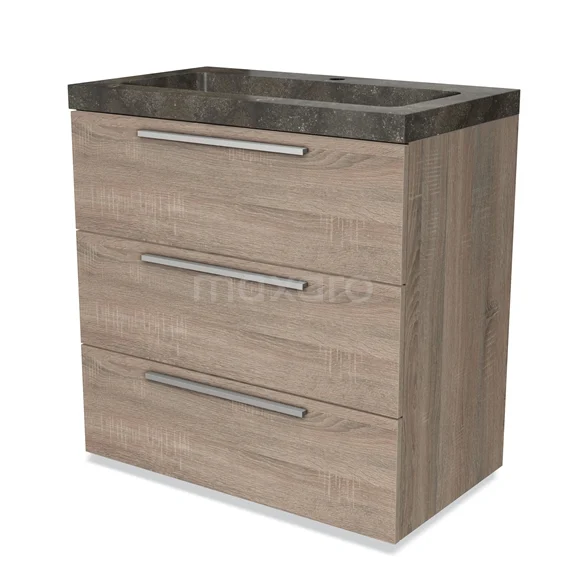 Modulo Waschtische | 80 cm Eiche Flach front Naturstein 3 Schubladen