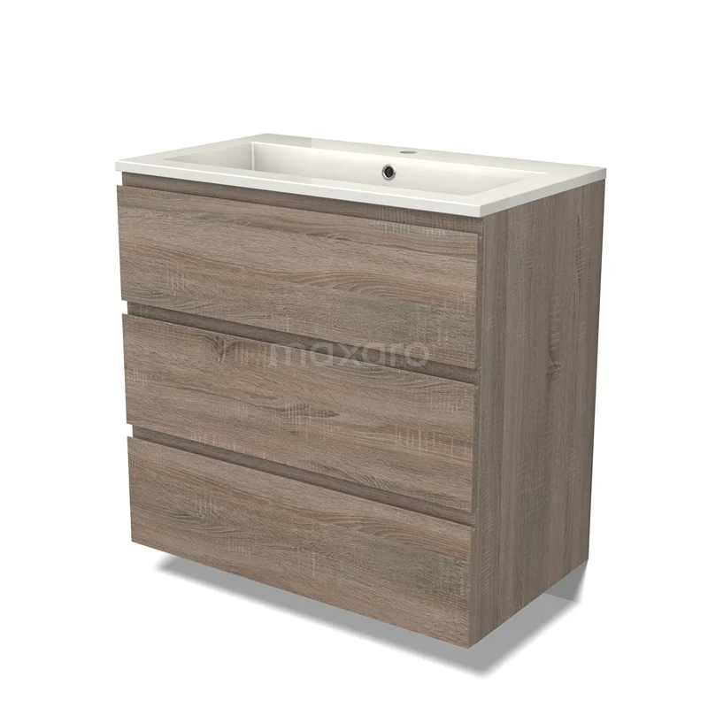 Modulo Waschtische | 80 cm Eiche Grifflos front Mineralguss 3 Schubladen