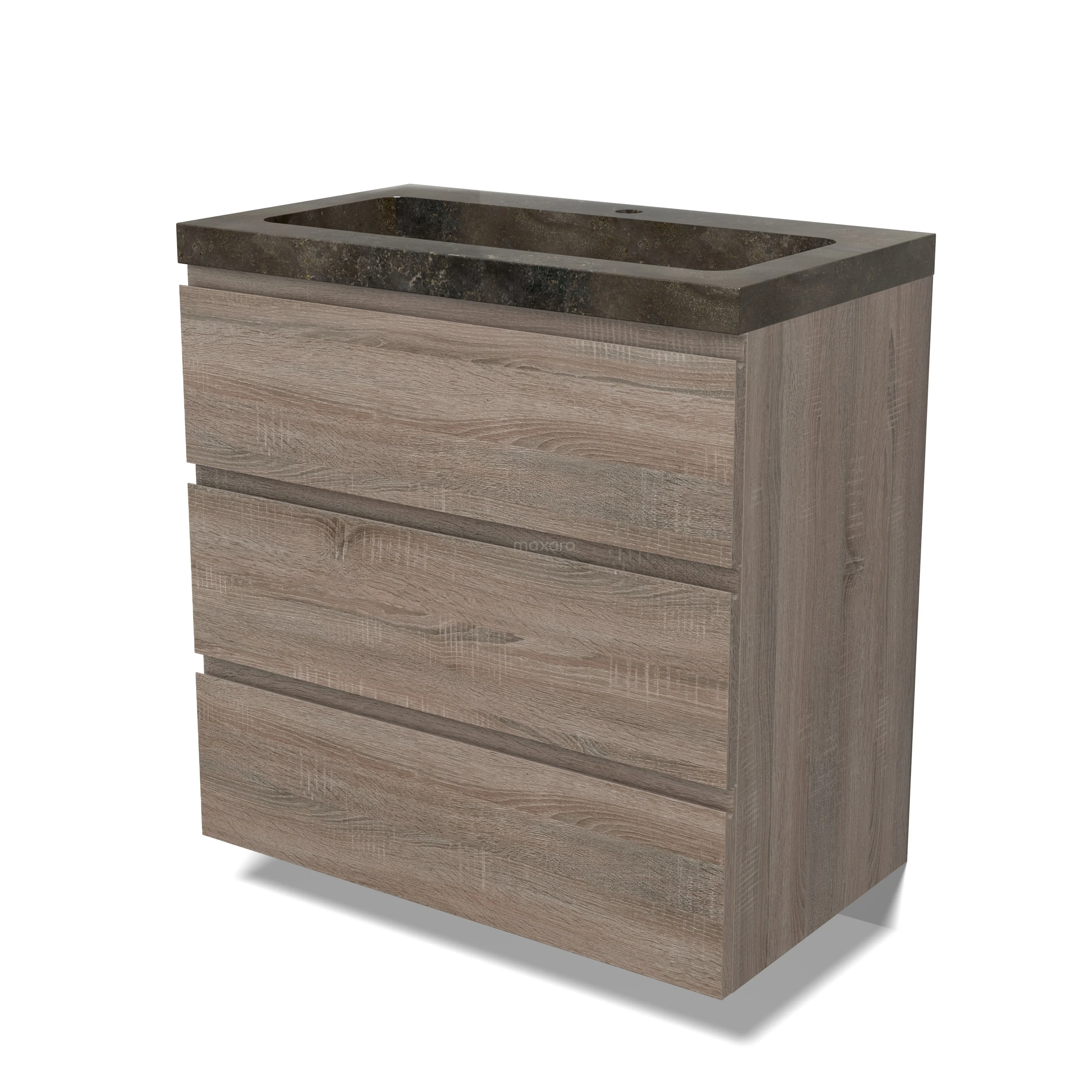 Modulo Waschtische | 80 cm Eiche Grifflos front Naturstein 3 Schubladen