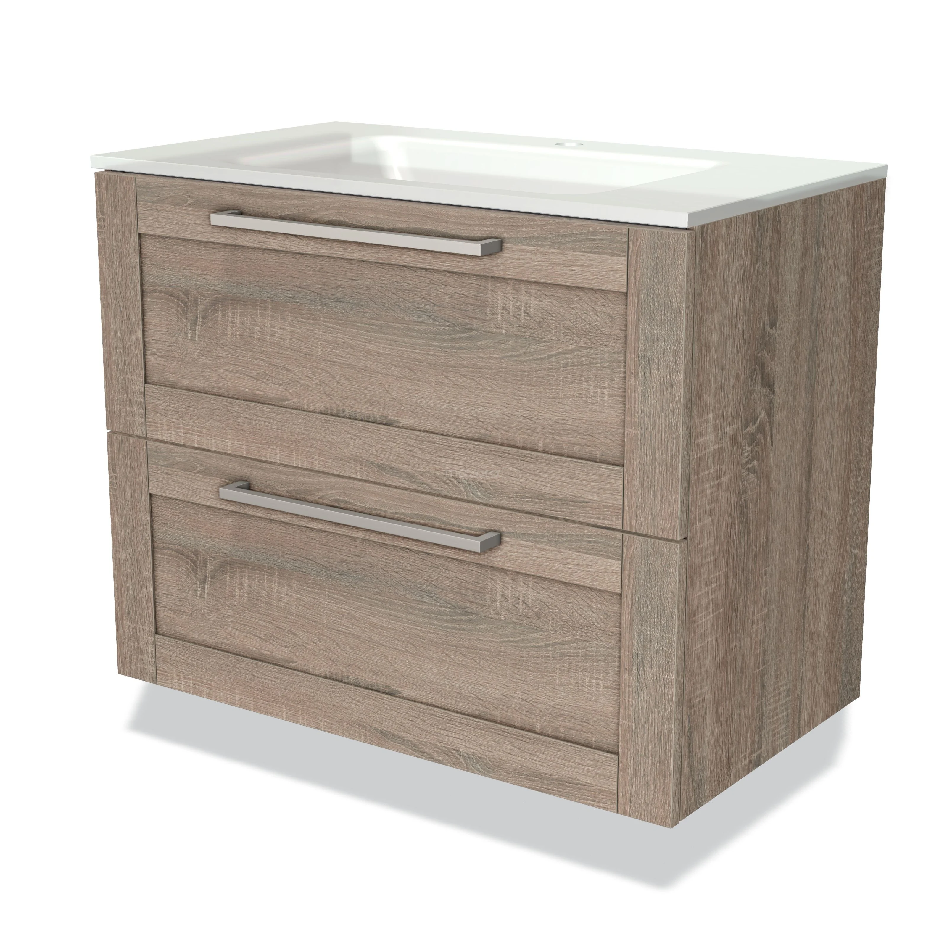 Modulo Waschtische | 80 cm Eiche Rahmen front Glas 2 übereinanderliegende Schubladen