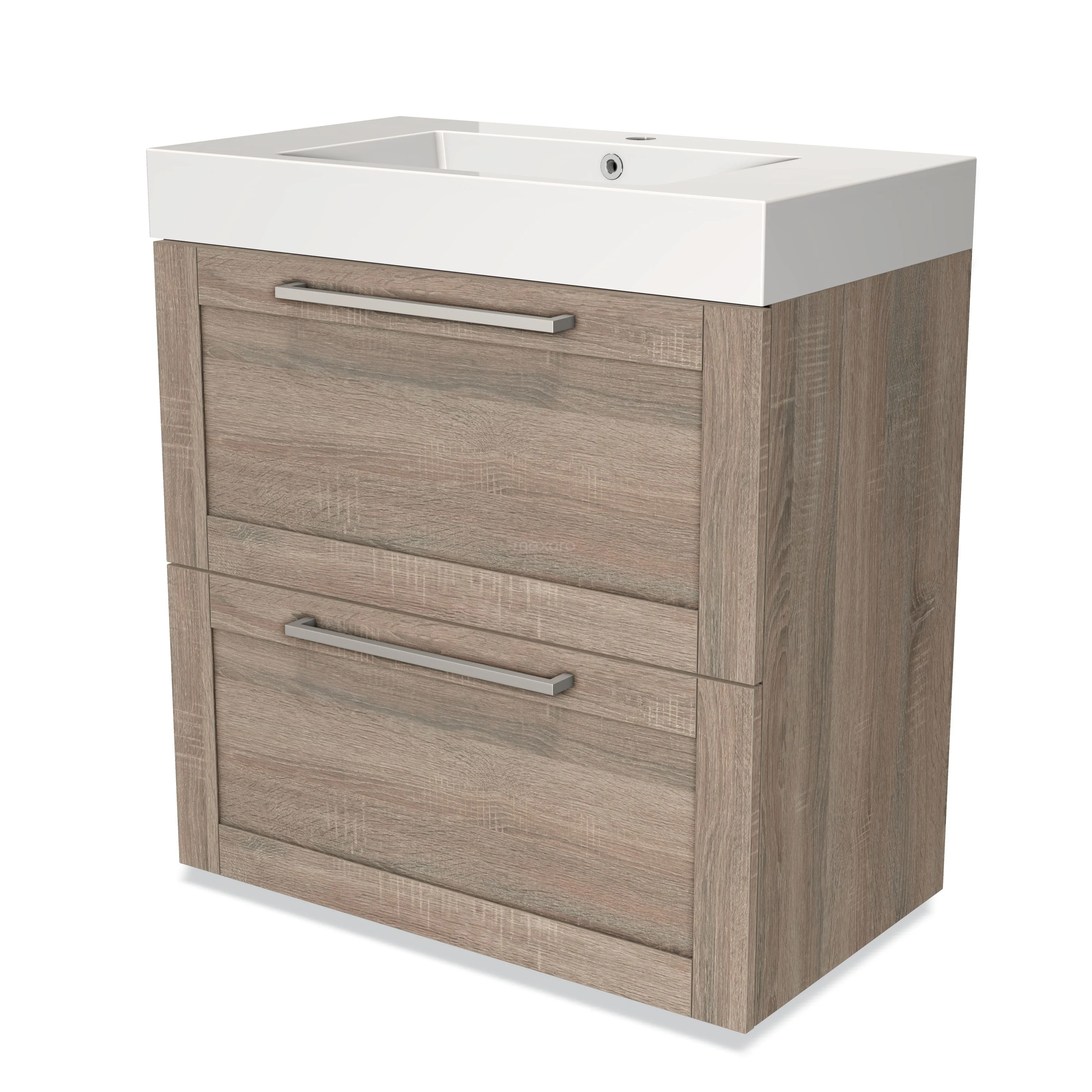 Modulo Waschtische | 80 cm Eiche Rahmen front Mineralguss 2 hohe Schubladen übereinanderliegend