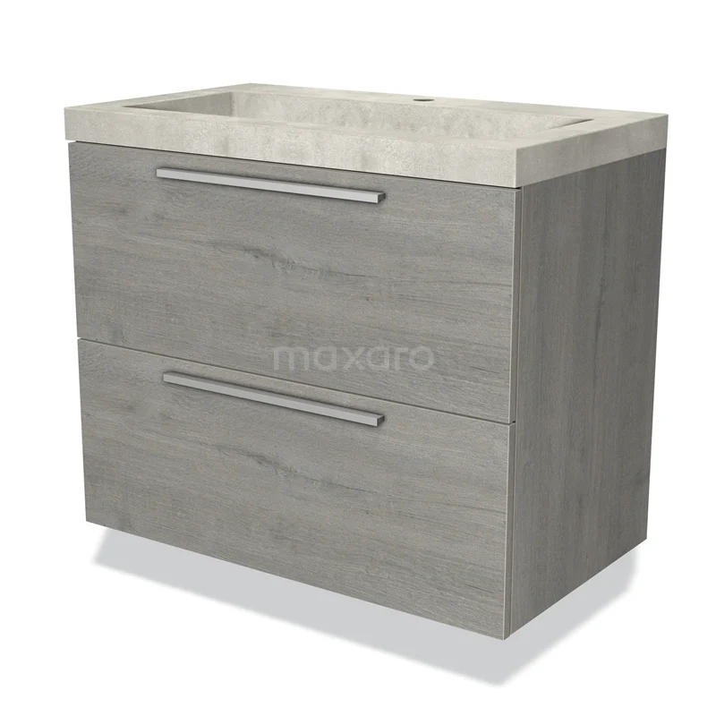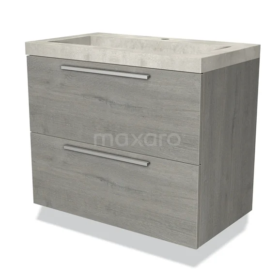 Modulo Waschtische | 80 cm Graue Eiche Flach front Beton 2 übereinanderliegende Schubladen
