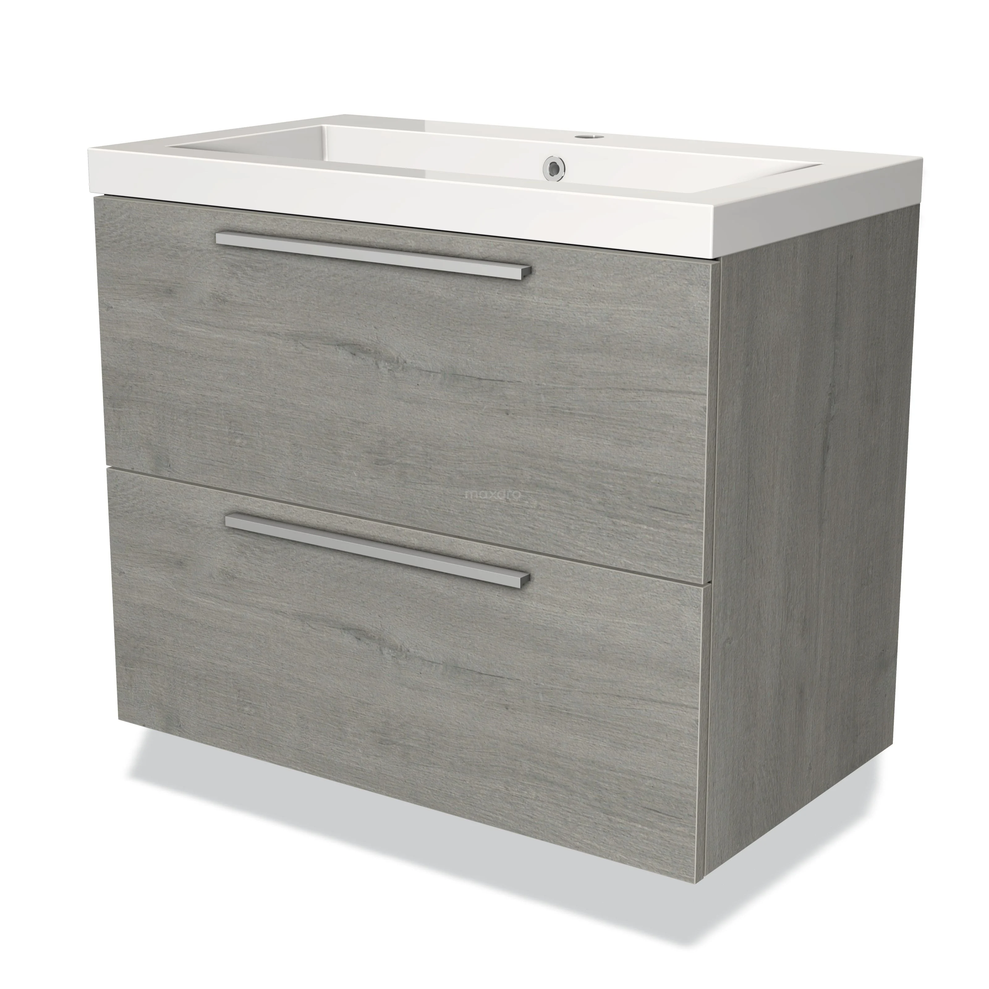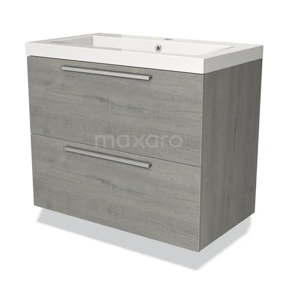 Modulo Waschtische | 80 cm Graue Eiche Flach front Mineralguss 2 übereinanderliegende Schubladen