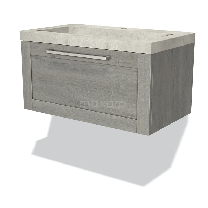Modulo Waschtische | 80 cm Graue Eiche Rahmen front Beton 1 Schublade