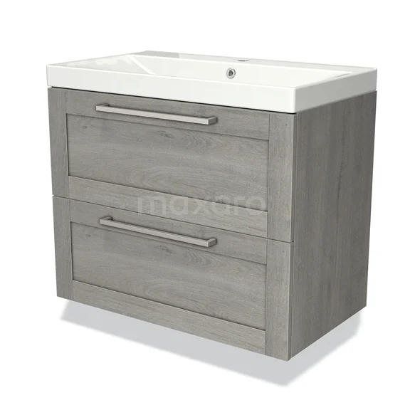 Modulo Waschtische | 80 cm Graue Eiche Rahmen front Keramik 2 übereinanderliegende Schubladen