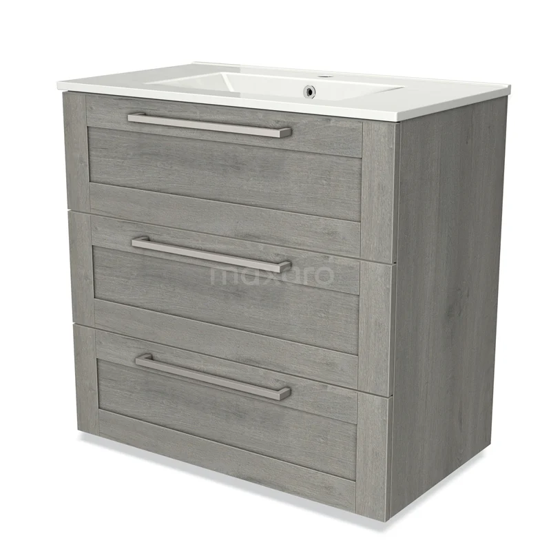 Modulo Waschtische | 80 cm Graue Eiche Rahmen front Keramik 3 Schubladen
