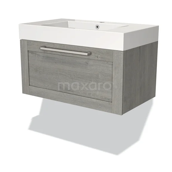 Modulo Waschtische | 80 cm Graue Eiche Rahmen front Mineralguss 1 Schublade