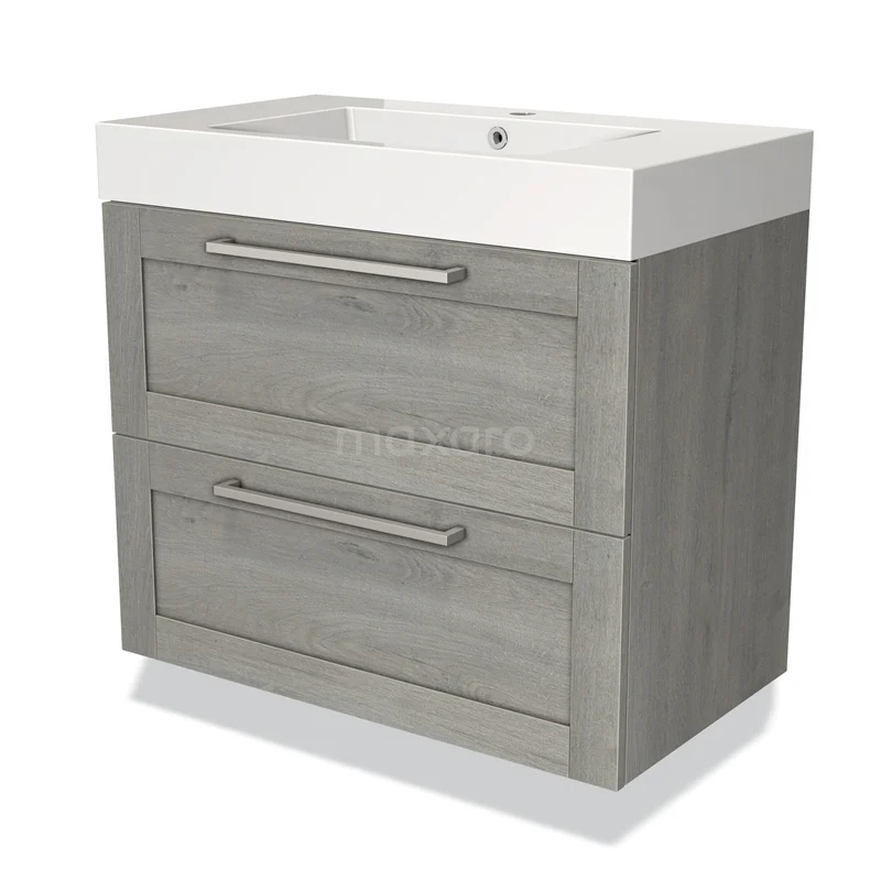 Modulo Waschtische | 80 cm Graue Eiche Rahmen front Mineralguss 2 übereinanderliegende Schubladen
