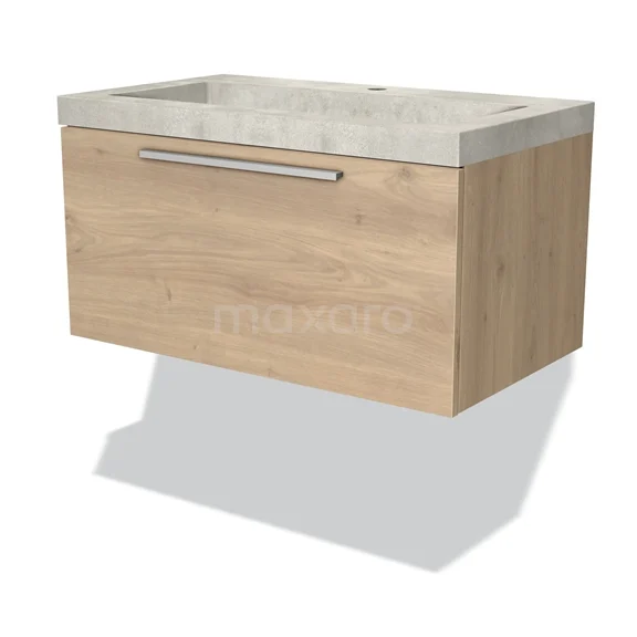 Modulo Waschtische | 80 cm Hellbraune Eiche Flach front Beton 1 Schublade