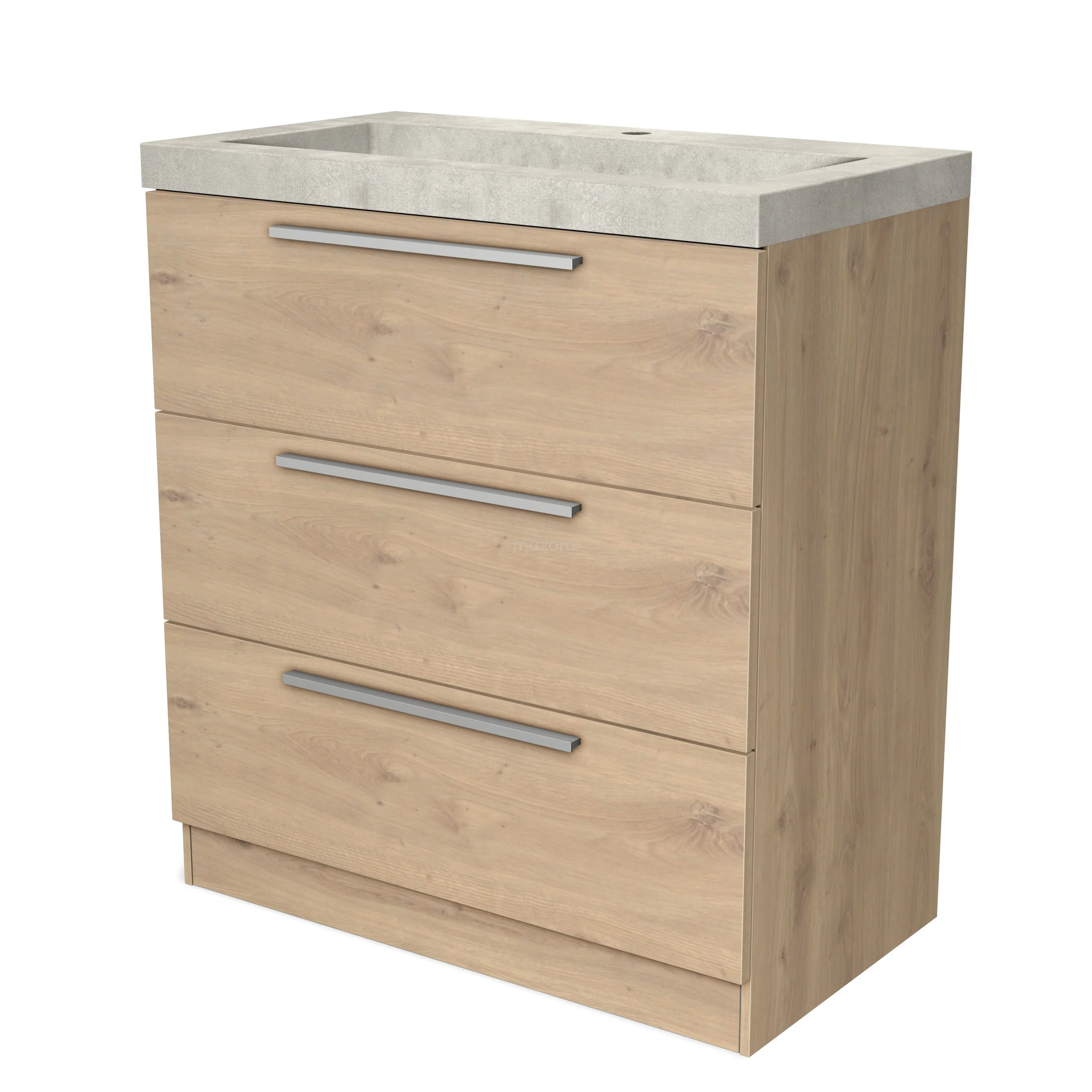 Modulo Waschtische | 80 cm Hellbraune Eiche Flach front Beton 3 stehende Schubladen