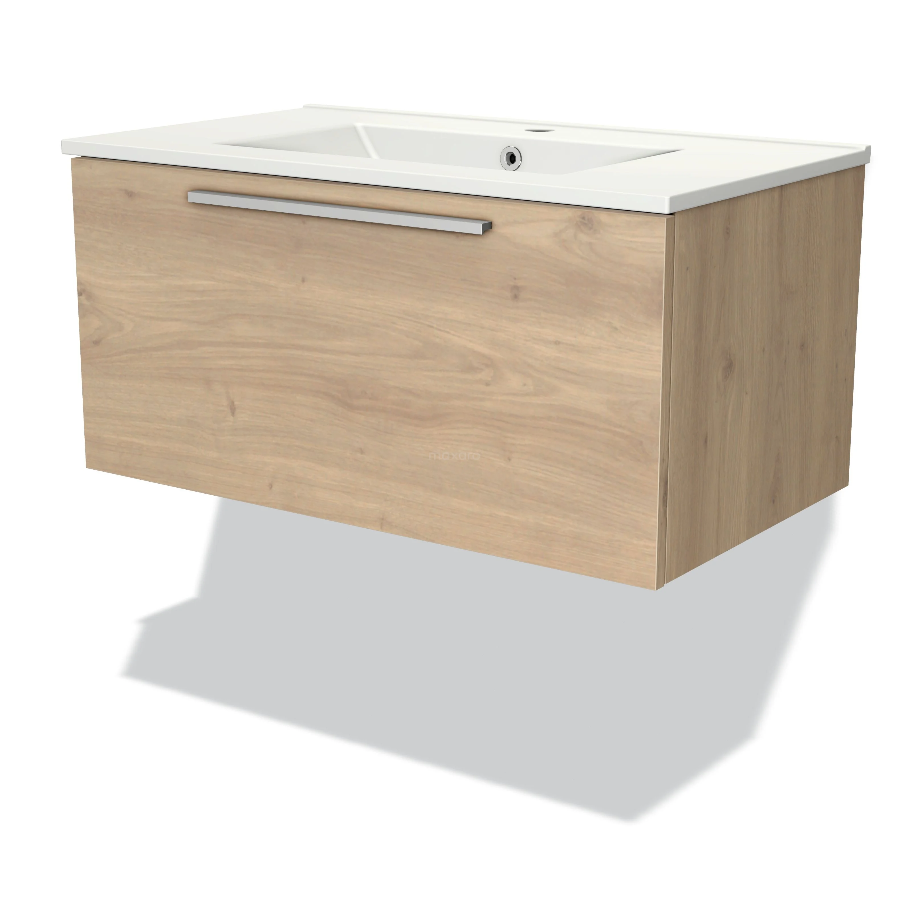 Modulo Waschtische | 80 cm Hellbraune Eiche Flach front Keramik 1 Schublade