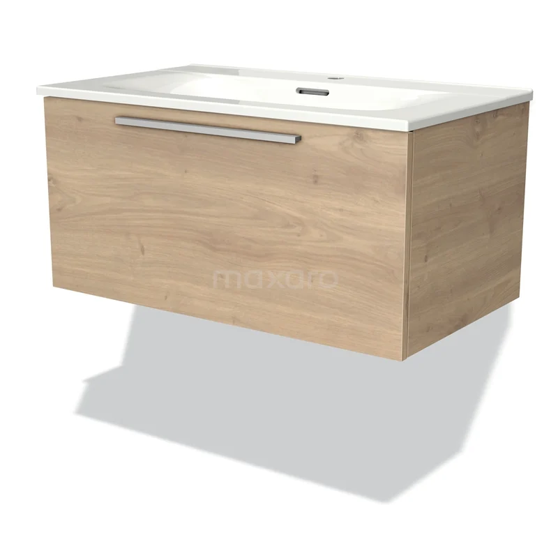 Modulo Waschtische | 80 cm Hellbraune Eiche Flach front Keramik 1 Schublade