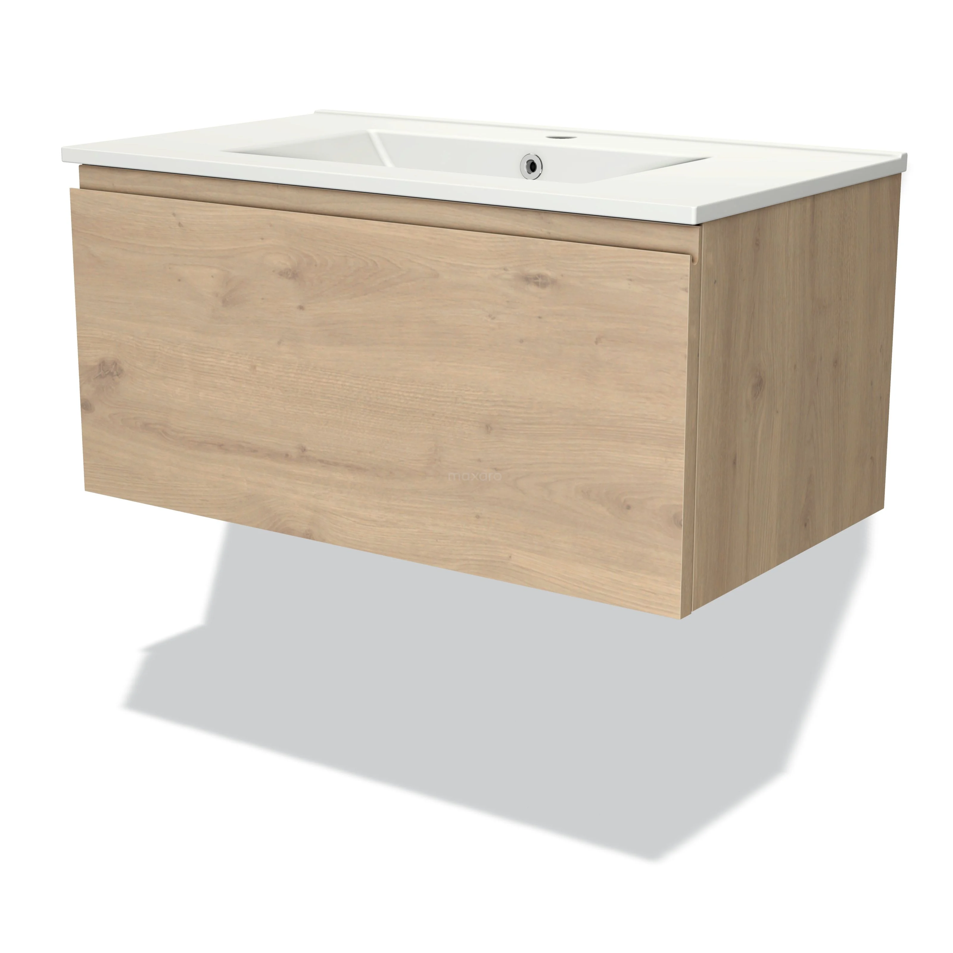 Modulo Waschtische | 80 cm Hellbraune Eiche Grifflos front Keramik 1 Schublade