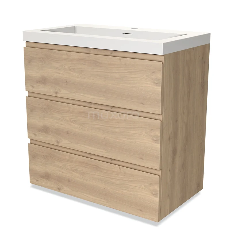 Modulo Waschtische | 80 cm Hellbraune Eiche Grifflos front Solid Surface 3 Schubladen