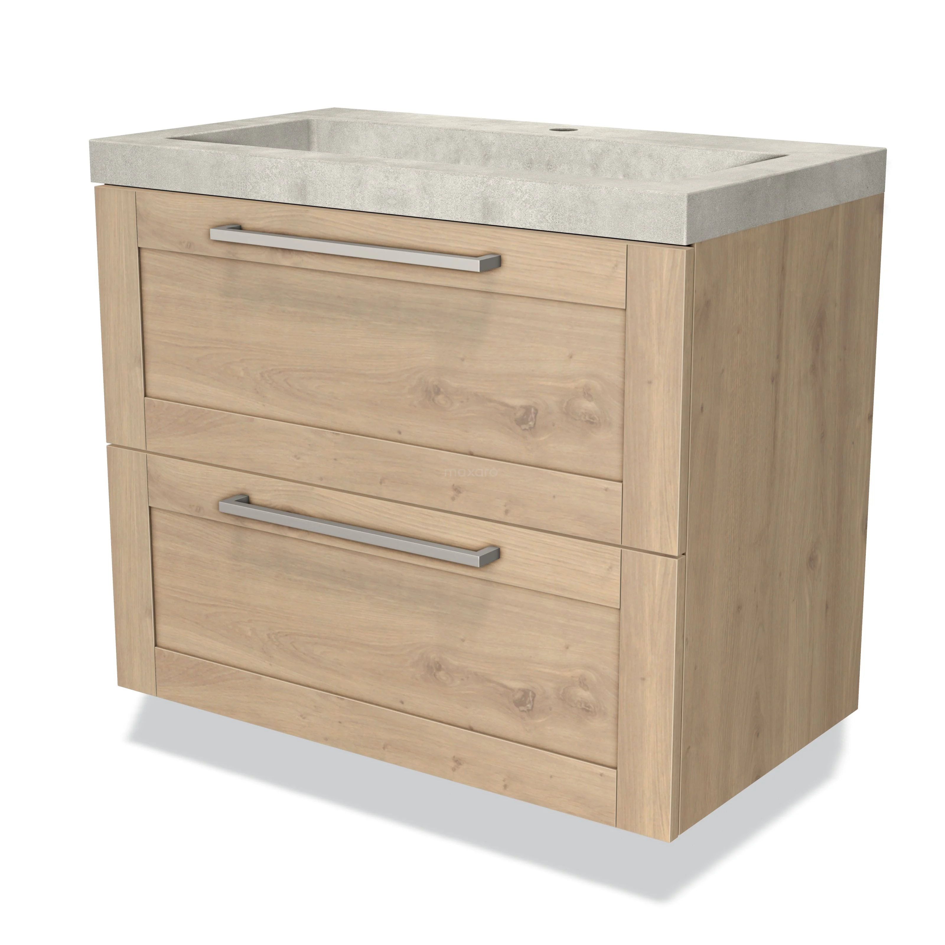 Modulo Waschtische | 80 cm Hellbraune Eiche Rahmen front Beton 2 übereinanderliegende Schubladen
