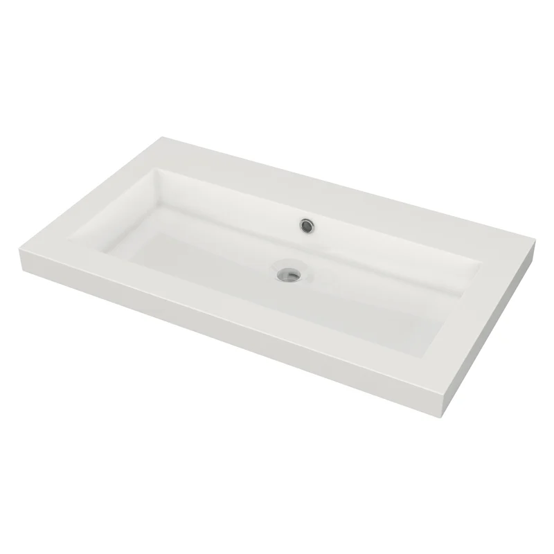Mineralguss-Waschbecken Das Waschbecken von Meza ist in Hochglanz Weiß gehalten und kommt in jedem Badezimmer gut zur Geltung. Er zeichnet sich durch klare, gerade Linien aus. Das Waschbecken besteht aus Mineralguss, der mit einer Gel-Beschichtung überzogen ist, die für einen schönen Glanz sorgt. Das Material ist sehr pflegeleicht. Kratzer und Schmutz lassen sich leicht wegpolieren.