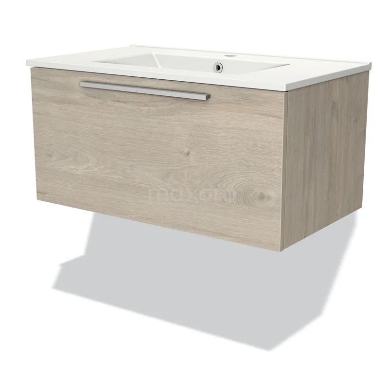 Modulo Waschtische | 80 cm Hellgraue Eiche Flach front Keramik 1 Schublade