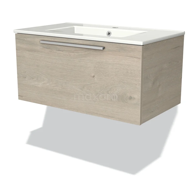 Modulo Waschtische | 80 cm Hellgraue Eiche Flach front Keramik 1 Schublade
