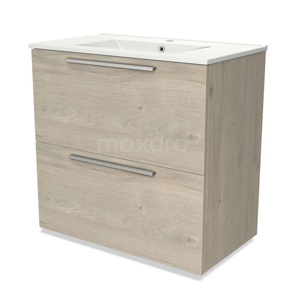 Modulo Waschtische | 80 cm Hellgraue Eiche Flach front Keramik 2 hohe Schubladen übereinanderliegend