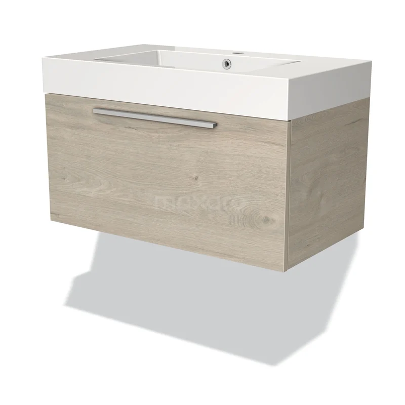 Modulo Waschtische | 80 cm Hellgraue Eiche Flach front Mineralguss 1 Schublade
