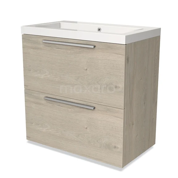 Modulo Waschtische | 80 cm Hellgraue Eiche Flach front Mineralguss 2 hohe Schubladen übereinanderliegend