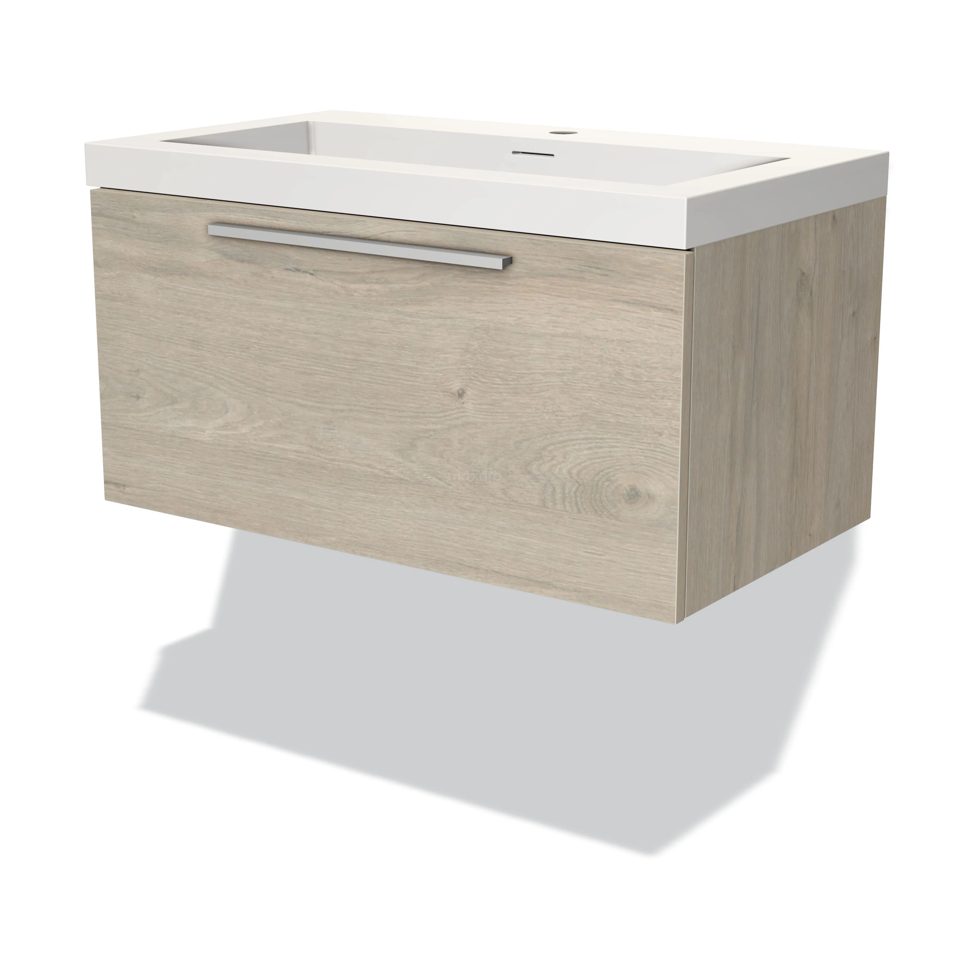 Modulo Waschtische | 80 cm Hellgraue Eiche Flach front Solid Surface 1 Schublade