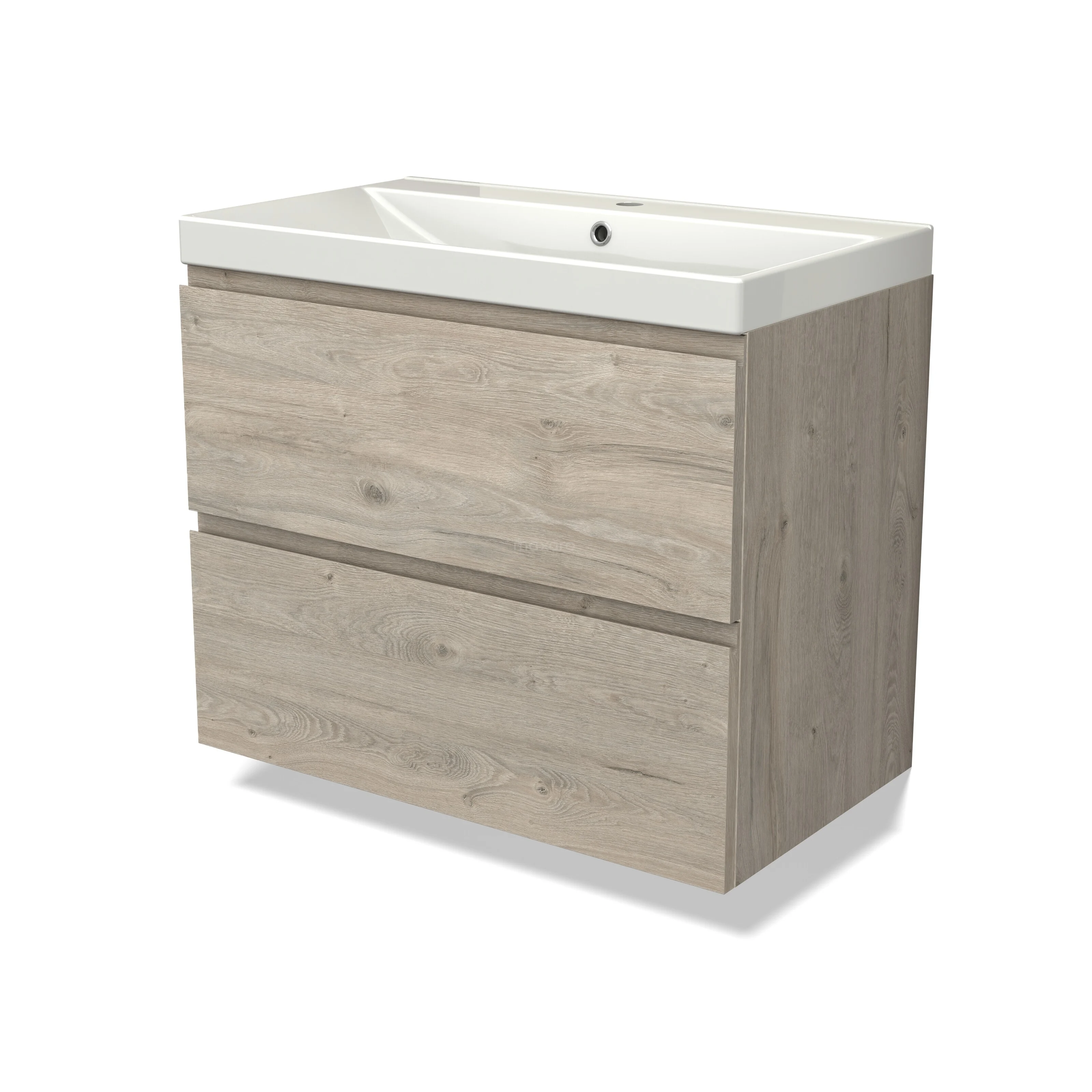 Modulo Waschtische | 80 cm Hellgraue Eiche Grifflos front Keramik 2 übereinanderliegende Schubladen