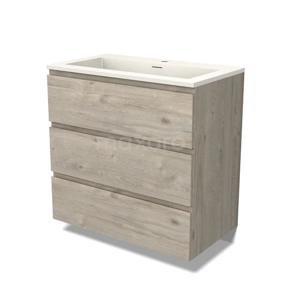 Modulo Waschtische | 80 cm Hellgraue Eiche Grifflos front Solid Surface 3 Schubladen