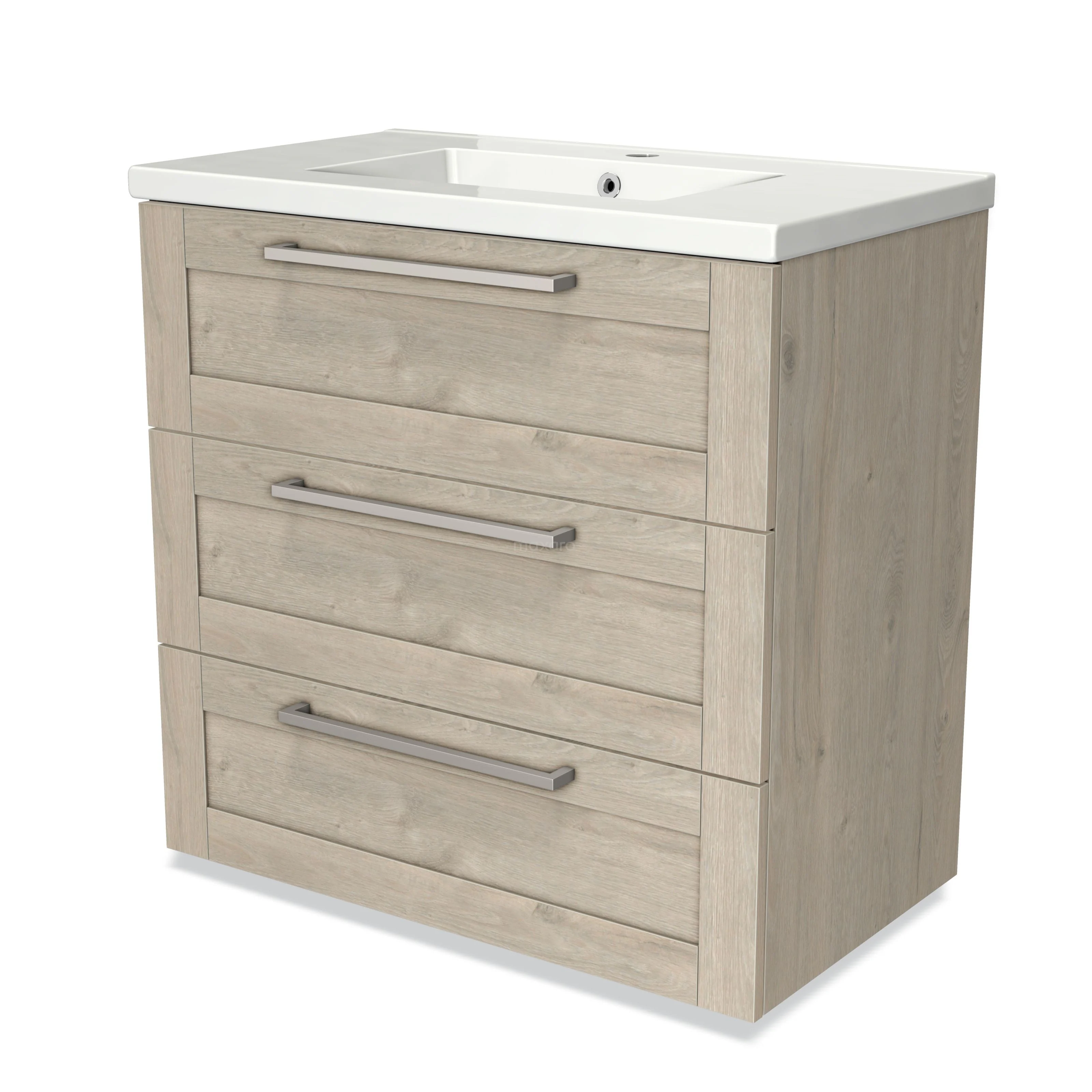 Modulo Waschtische | 80 cm Hellgraue Eiche Rahmen front Keramik 3 Schubladen