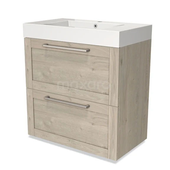 Modulo Waschtische | 80 cm Hellgraue Eiche Rahmen front Mineralguss 2 hohe Schubladen übereinanderliegend