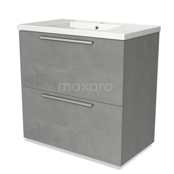 Modulo Waschtische | 80 cm Hellgrauer Beton Flach front Keramik 2 hohe Schubladen übereinanderliegend