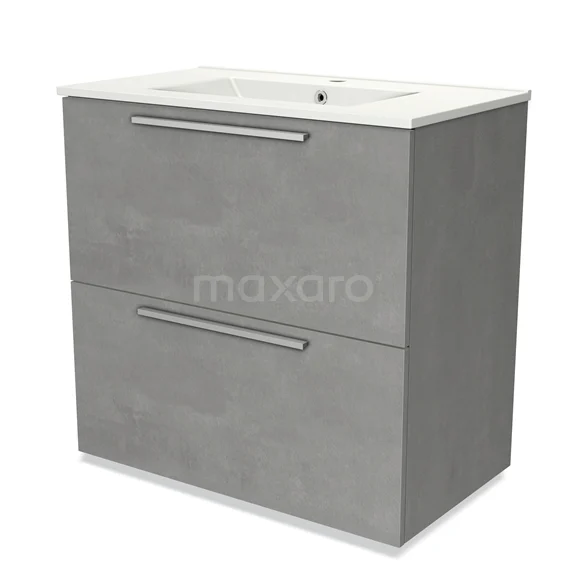 Modulo Waschtische | 80 cm Hellgrauer Beton Flach front Keramik 2 hohe Schubladen übereinanderliegend