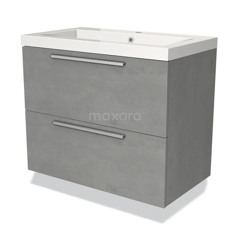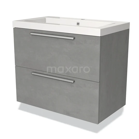Modulo Waschtische | 80 cm Hellgrauer Beton Flach front Mineralguss 2 übereinanderliegende Schubladen