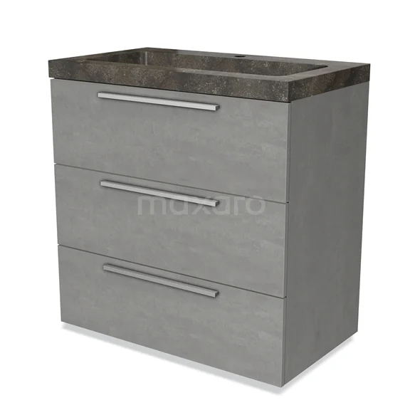 Modulo Waschtische | 80 cm Hellgrauer Beton Flach front Naturstein 3 Schubladen
