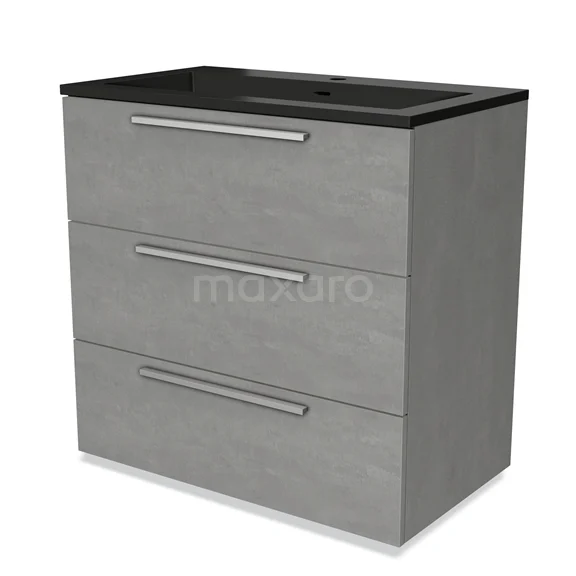 Modulo Waschtische | 80 cm Hellgrauer Beton Flach front Quarz 3 Schubladen