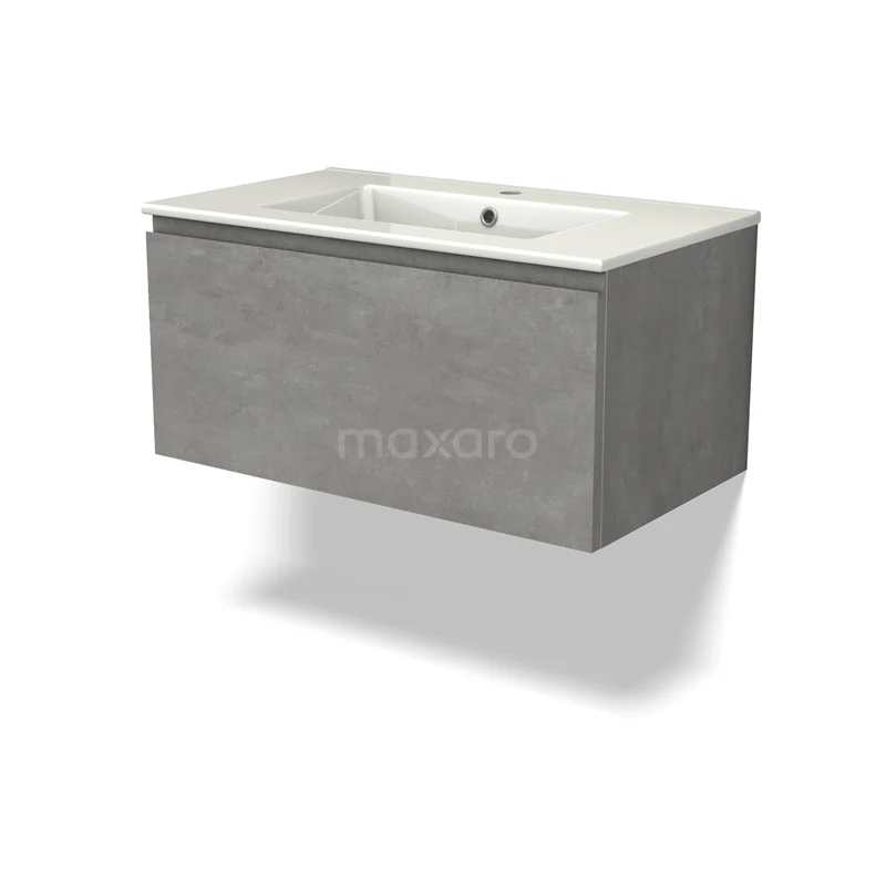 Modulo Waschtische | 80 cm Hellgrauer Beton Grifflos front Keramik 1 Schublade