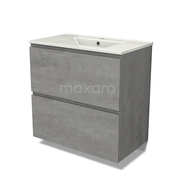 Modulo Waschtische | 80 cm Hellgrauer Beton Grifflos front Keramik 2 hohe Schubladen übereinanderliegend