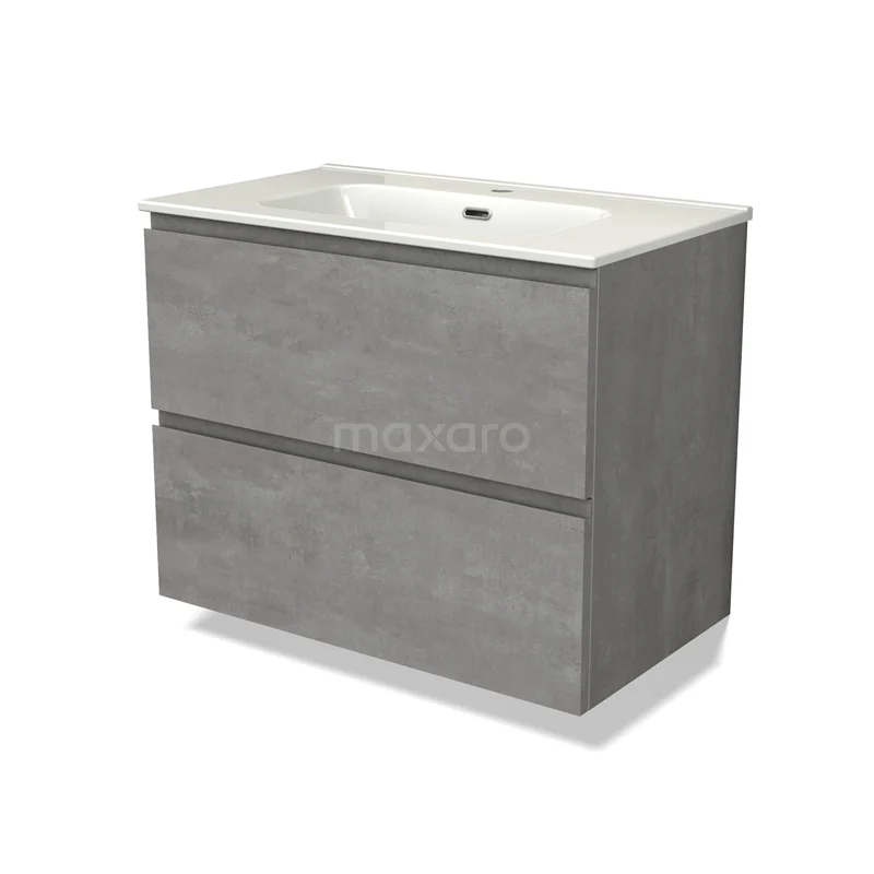 Modulo Waschtische | 80 cm Hellgrauer Beton Grifflos front Keramik 2 übereinanderliegende Schubladen